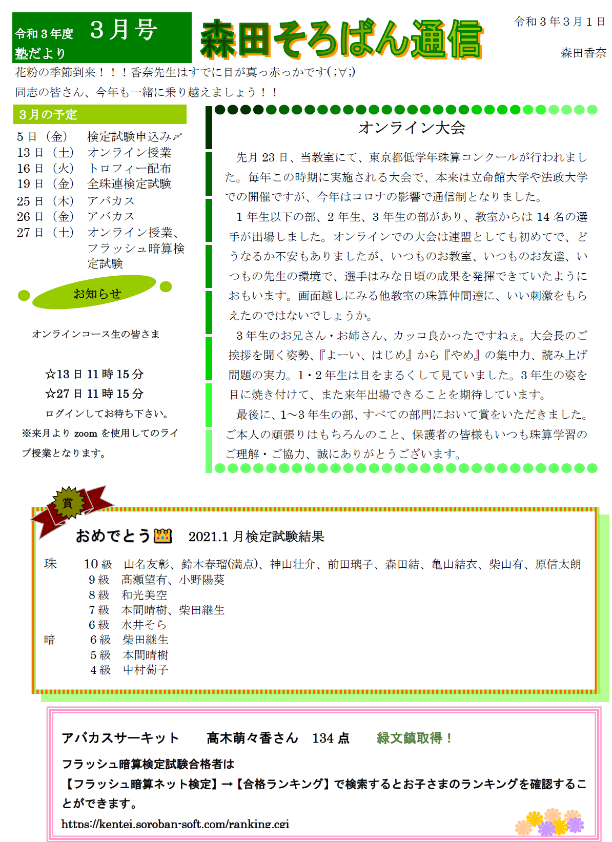 2021年3月のおたより