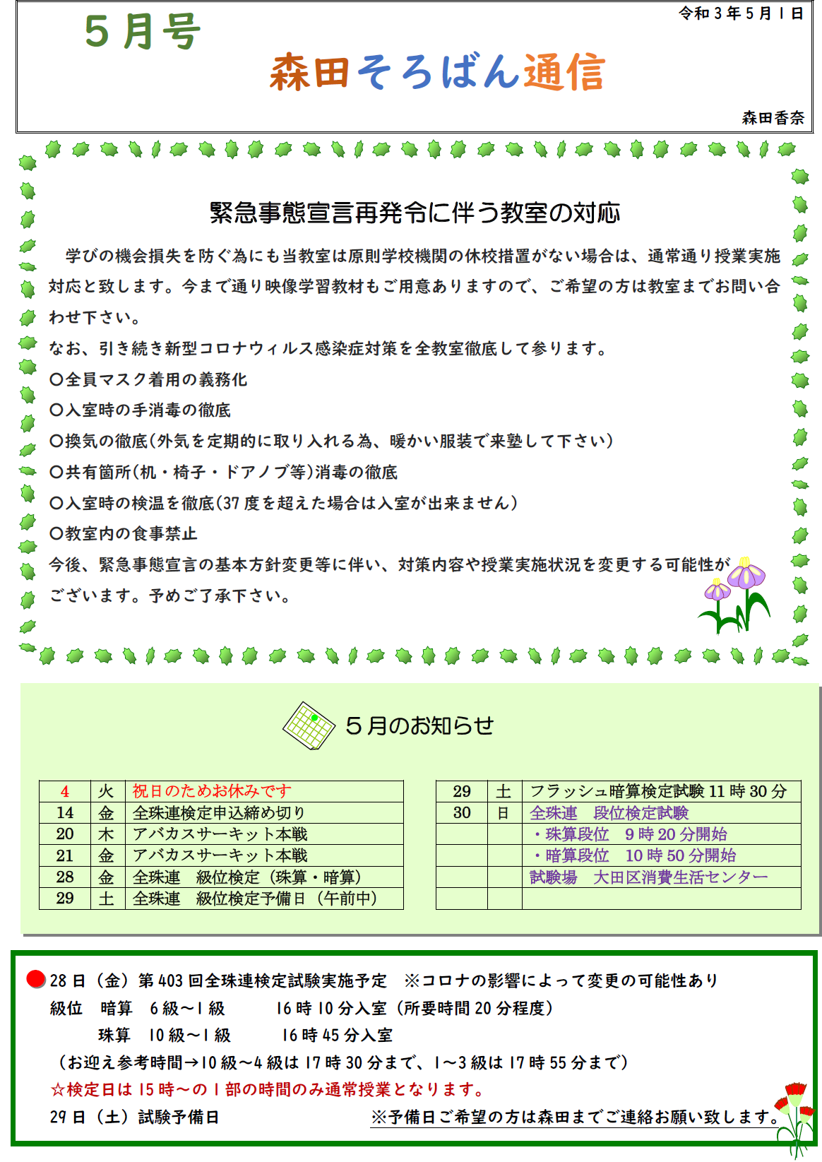 2021年5月のおたより