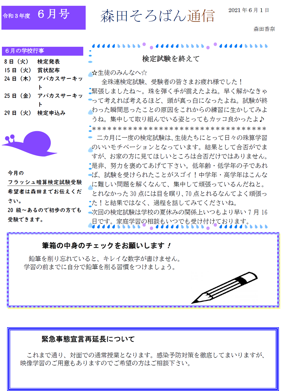 2021年6月のおたより