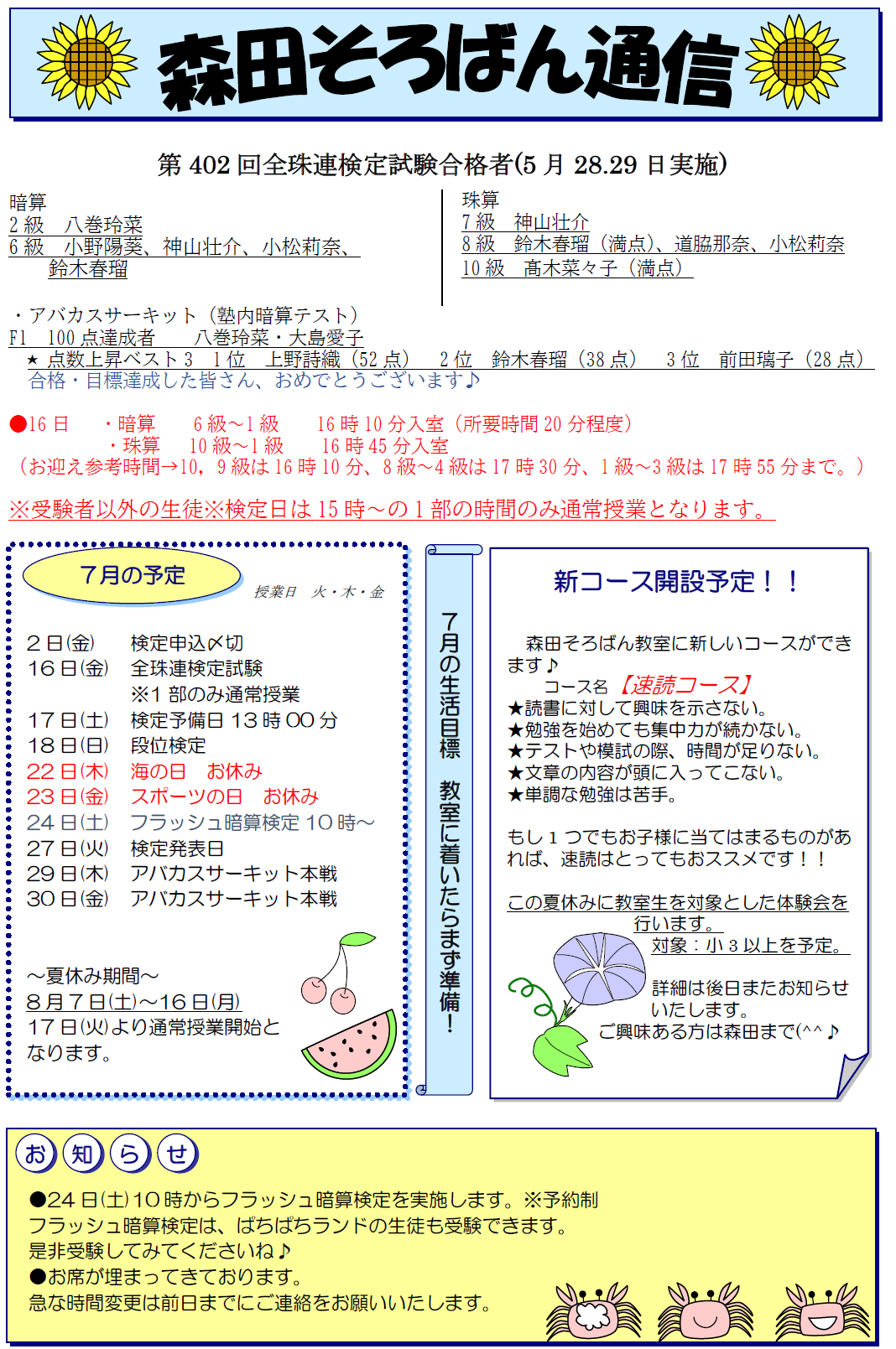 そろばん無料体験学習受付中!お気軽にお問い合わせください。