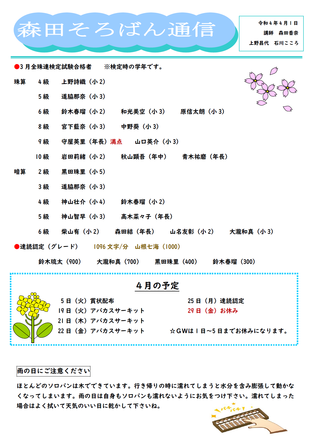 森田そろばん教室は昭和34年に先代の父が開塾したそろばん教室です。上級、段位を多数輩出した先代のノウハウを受け継ぐとともに、暗算力アップにつながるソロバンのやり方を独自に研究。2019年9月に開塾以来、早くも珠算、暗算ともに上級検定合格者多数。