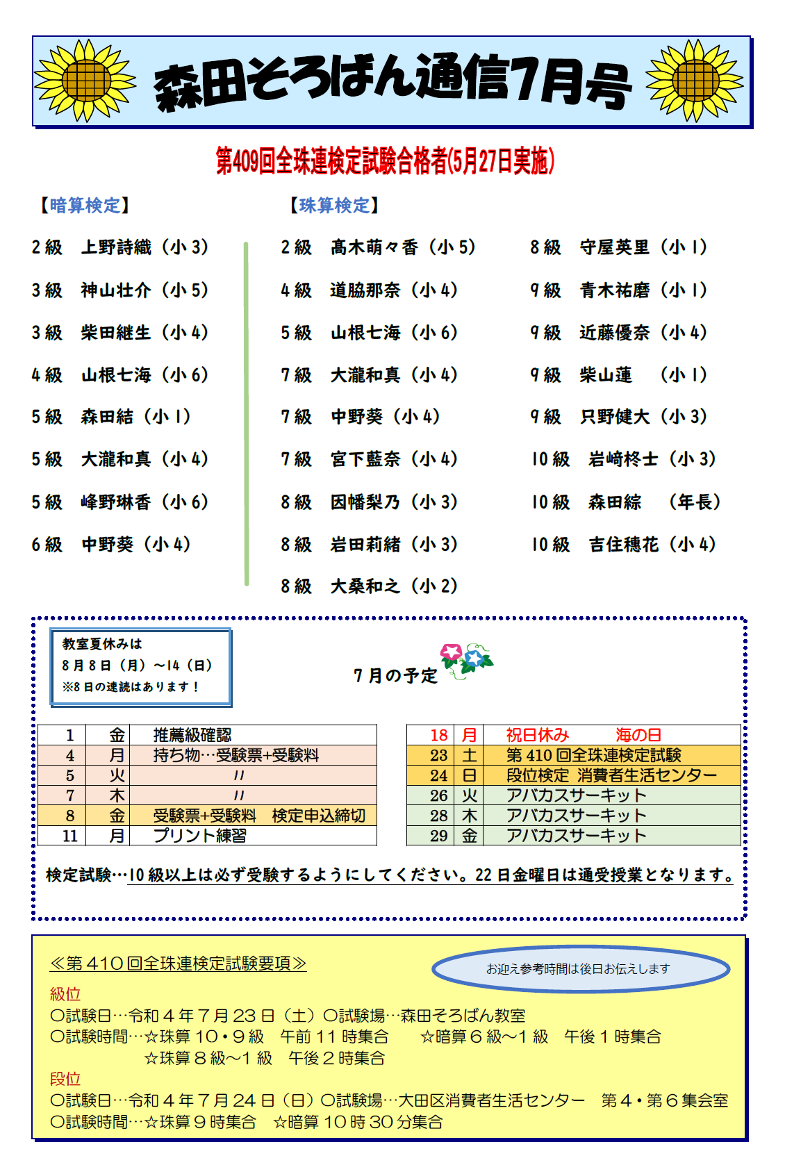 森田そろばん教室は昭和34年に先代の父が開塾したそろばん教室です。上級、段位を多数輩出した先代のノウハウを受け継ぐとともに、暗算力アップにつながるソロバンのやり方を独自に研究。2019年9月に開塾以来、早くも珠算、暗算ともに上級検定合格者多数。