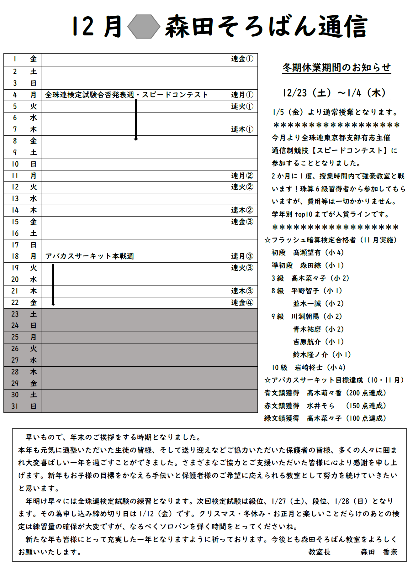 森田そろばん教室は昭和34年に先代の父が開塾したそろばん教室です。上級、段位を多数輩出した先代のノウハウを受け継ぐとともに、暗算力アップにつながるソロバンのやり方を独自に研究。2019年9月に開塾以来、早くも珠算、暗算ともに上級検定合格者多数。