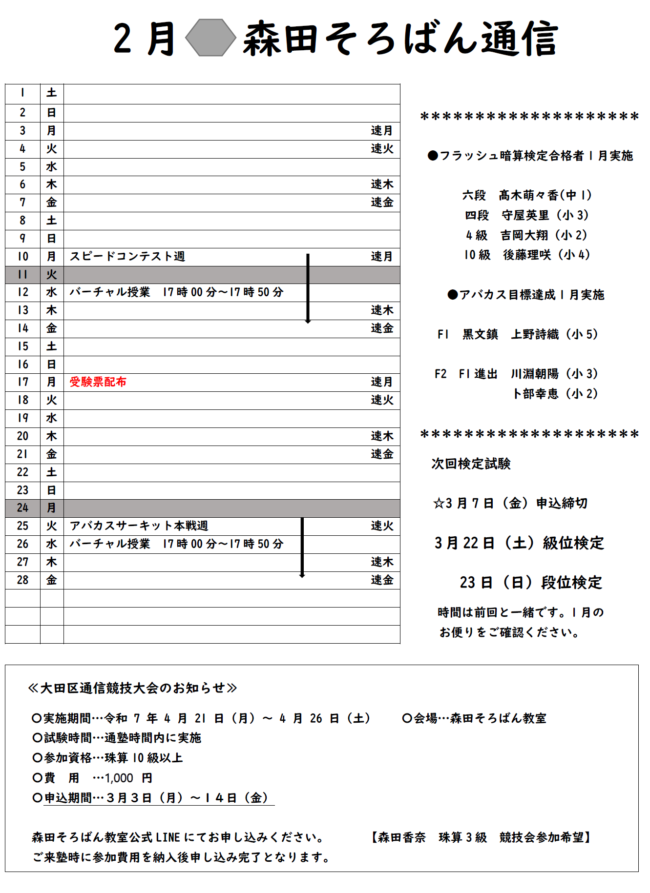 2025年2月のおたより