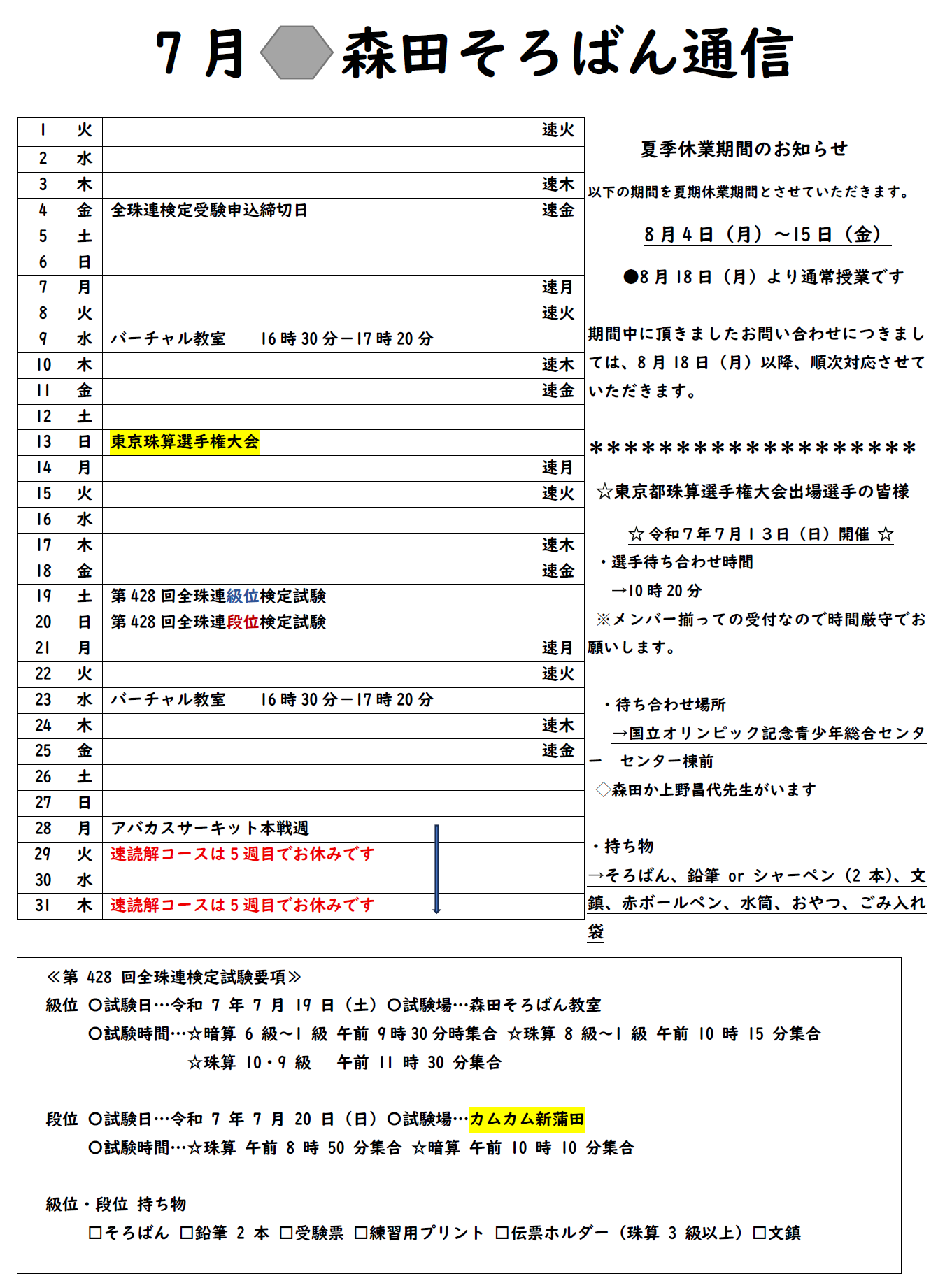森田そろばん教室は昭和34年に先代の父が開塾したそろばん教室です。上級、段位を多数輩出した先代のノウハウを受け継ぐとともに、暗算力アップにつながるソロバンのやり方を独自に研究。2019年9月に開塾以来、早くも珠算、暗算ともに上級検定合格者多数。